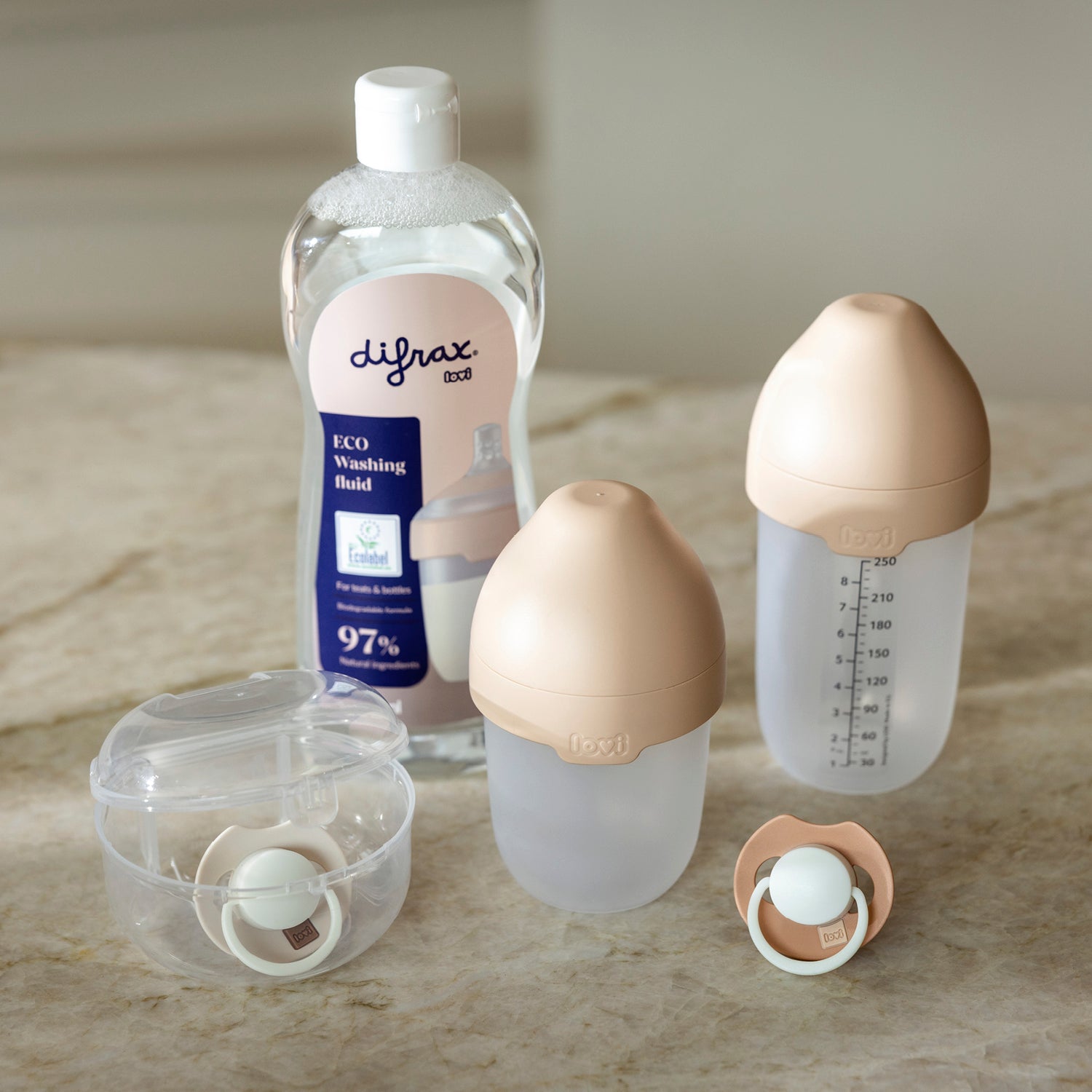 Difrax LOVI a créé un biberon Mammafeel innovant, conçu pour imiter au plus près la forme, la texture et la dynamique du sein maternel.