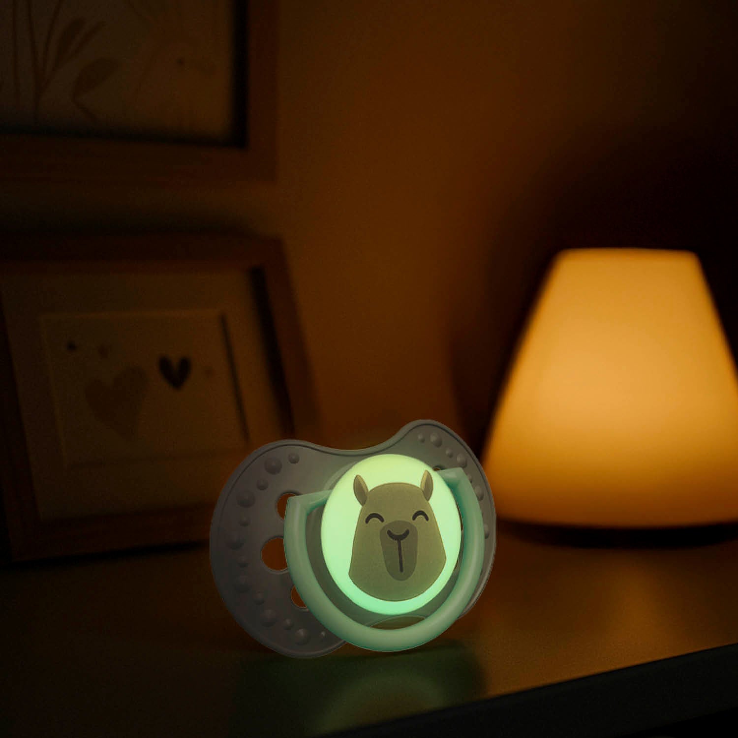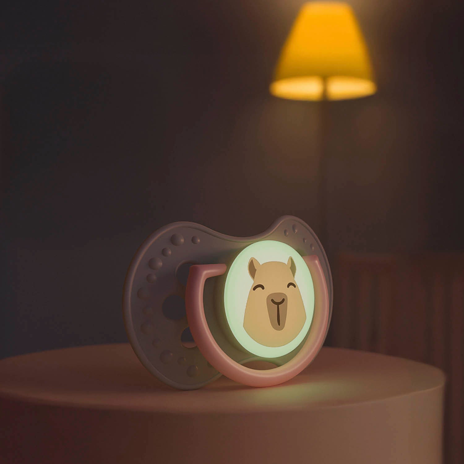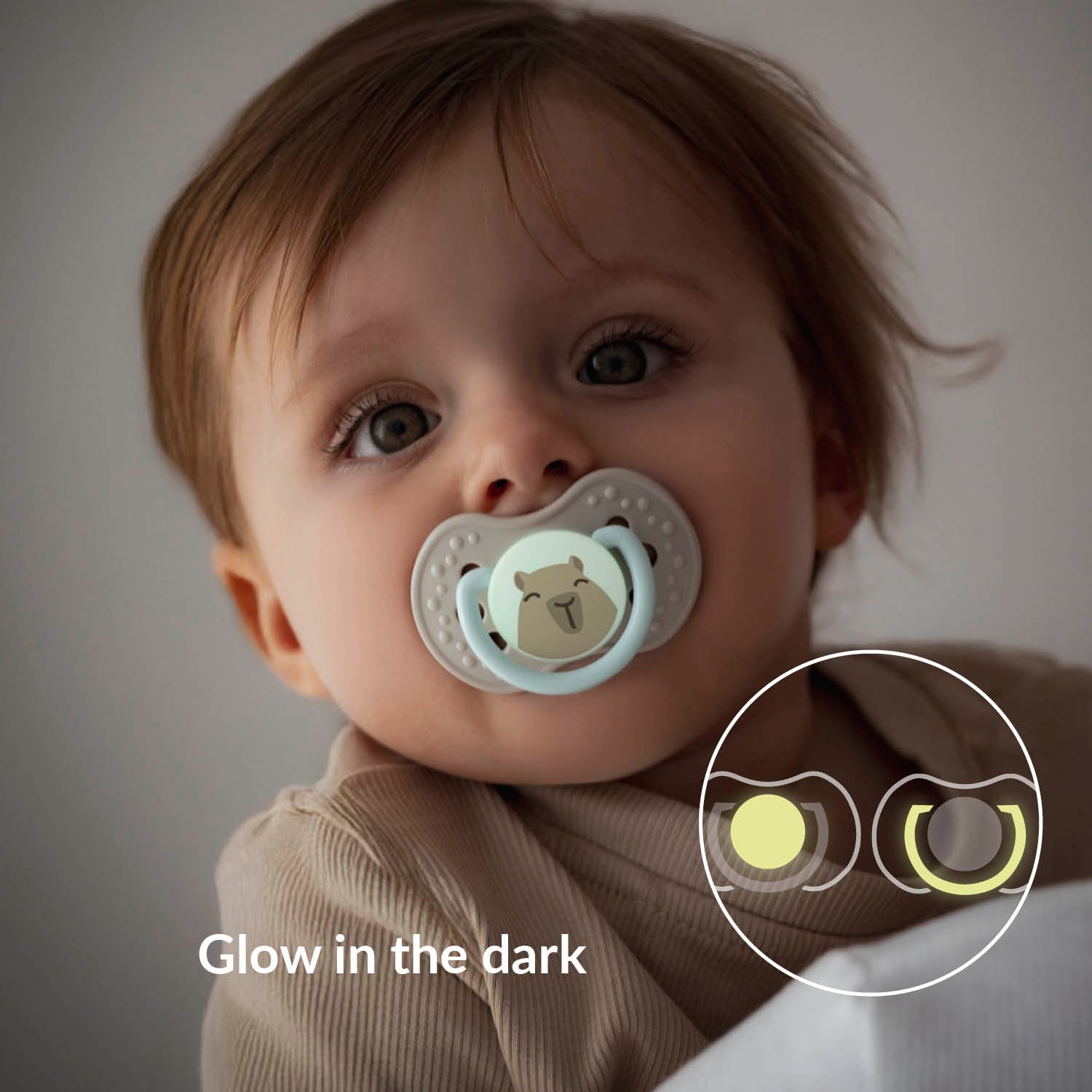 La collection CapiChill apporte calme, douceur et une touche d'originalité, parfaite pour votre petit rêveur. La sucette Brille dans le Noir est dotée d'un anneau qui absorbe la lumière et brille dans l'obscurité.