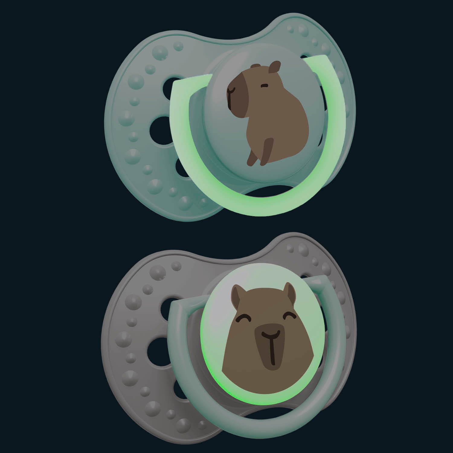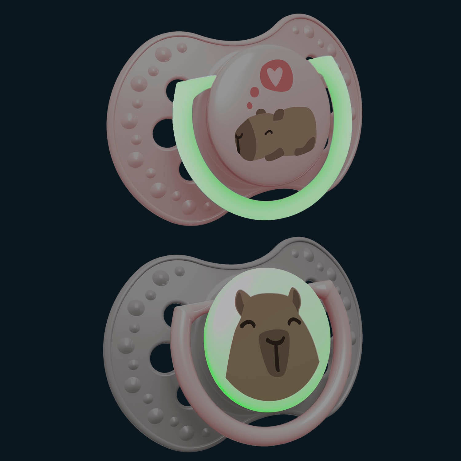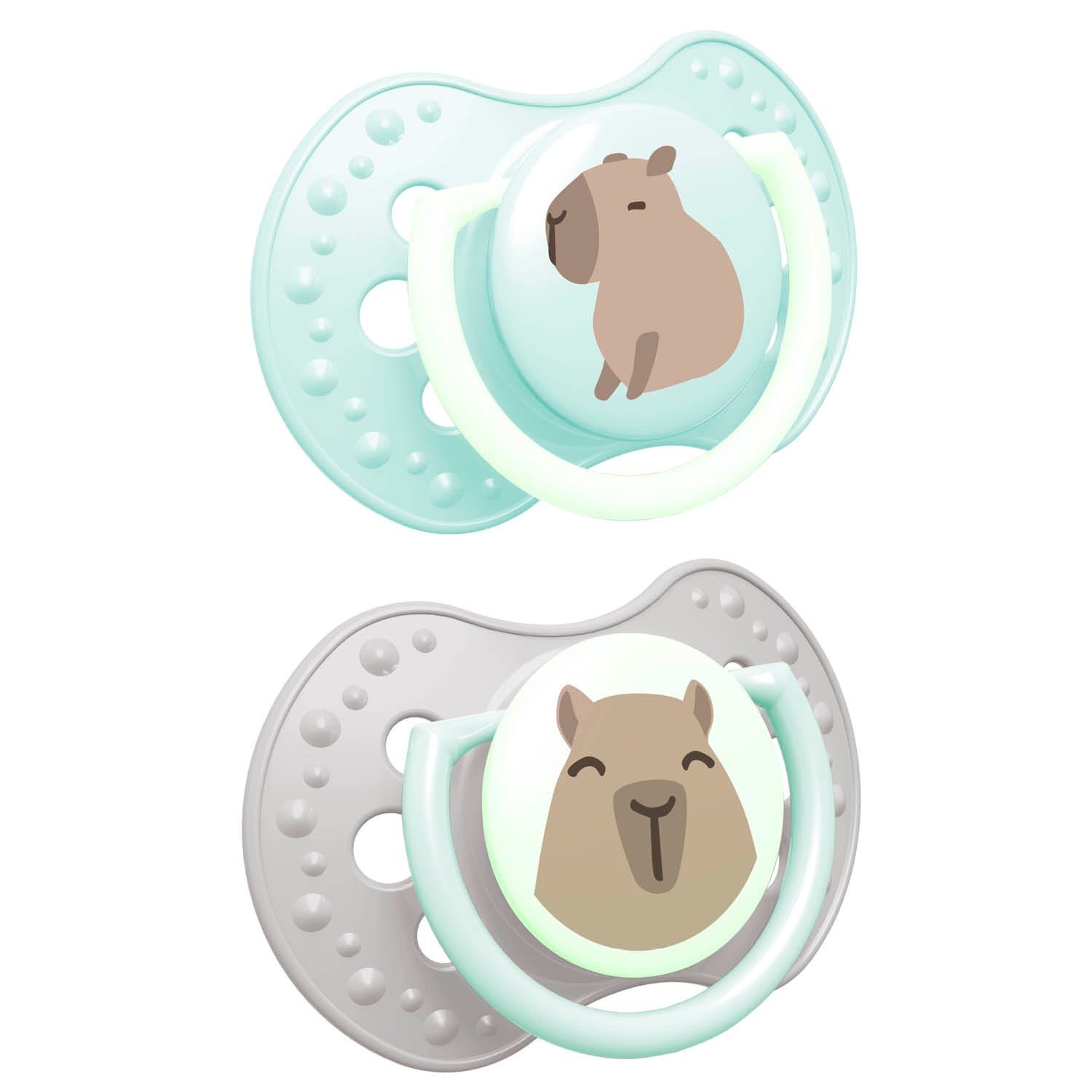 La collection CapiChill apporte calme, douceur et une touche d'originalité, parfaite pour votre petit rêveur. La sucette Brille dans le Noir est dotée d'un anneau qui absorbe la lumière et brille dans l'obscurité.
